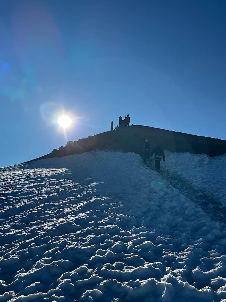 The project originated when Town, then a physics teacher, and outdoor program director Chip Mehring observed dramatic changes on the mountain over time. Together, they envisioned layering scientific inquiry onto the school’s annual mountaineering expedition, turning each ascent into an opportunity to collect data about Baker’s shifting environment. With ESR’s support, the collaboration grew into a structured program that provides both mentorship and research experience to high school students.
